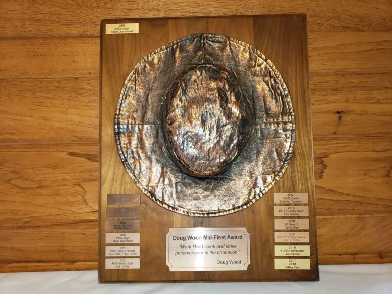 The Doug Wood Mid Fleet Award, offered in honor of Doug Wood by his family, will be presented annually to the skipper who finishes “mid fleet” in the National Championship Regatta. Mid Fleet shall be determined by the number of total contestants divided by two. If there is an uneven number of contestants the award will be presented to the contestant with the higher placement. (i.e. if 41 boats… half is 20.5… award goes to skipper in 21st place.)
